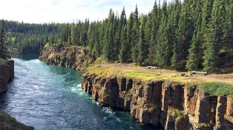 Your experience begins with a short drive from downtown Whitehorse to the canyon viewpoint. As you arrive, your guide will introduce the fascinating story of the region—how the fast-flowing river and narrow canyon once challenged gold rush stampeders traveling north in the late 1800s. Walk across the iconic suspension bridge and enjoy incredible views of the canyon below. The trail offers several photo spots overlooking the river, forest, and dramatic volcanic rock formations carved by centuries of flowing water. During the visit you’ll have time to explore the surrounding trails, learn about local wildlife and plants, and hear stories about Indigenous history and early explorers of the Yukon. The peaceful atmosphere and stunning scenery make this stop one of the most photographed places in the region.